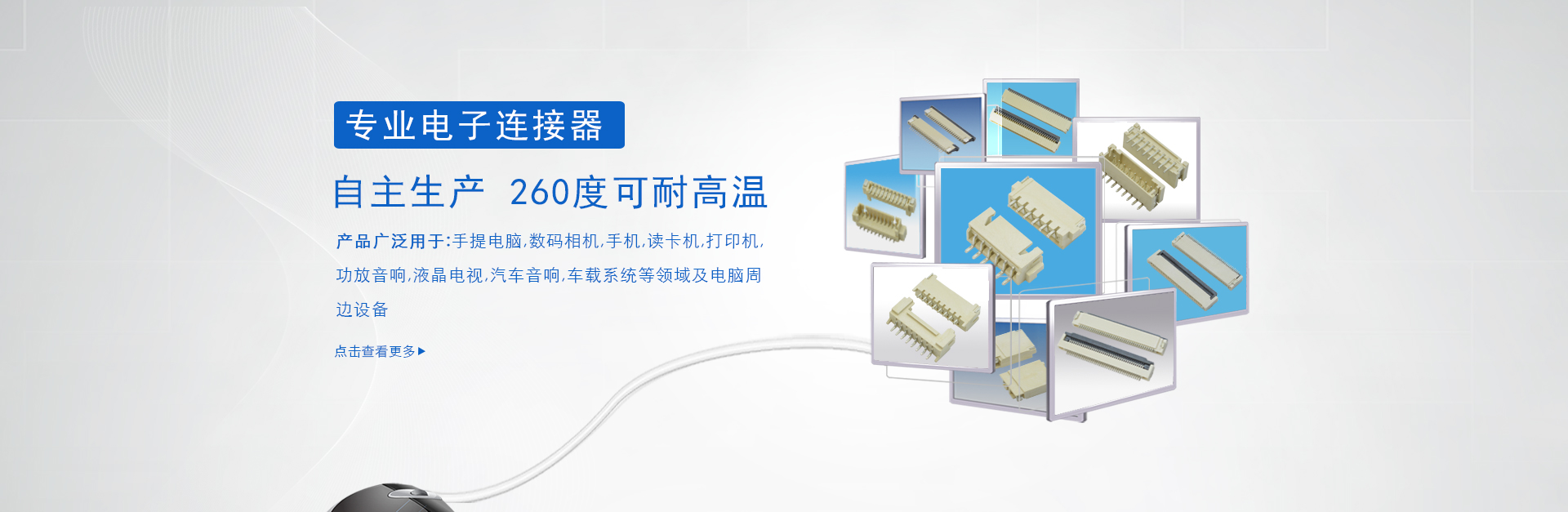 經(jīng)營項(xiàng)目:FPC連接器、接插件、光纖連接器、FFC排線、端子線束等。間距有:0.3mm/0.5mm/0.8mm/1.0mm/1.25mm/1.5mm/2.0mm/2.54mm/3.96mm.......并可以為您開模定制各類精密連接器及配套線束.